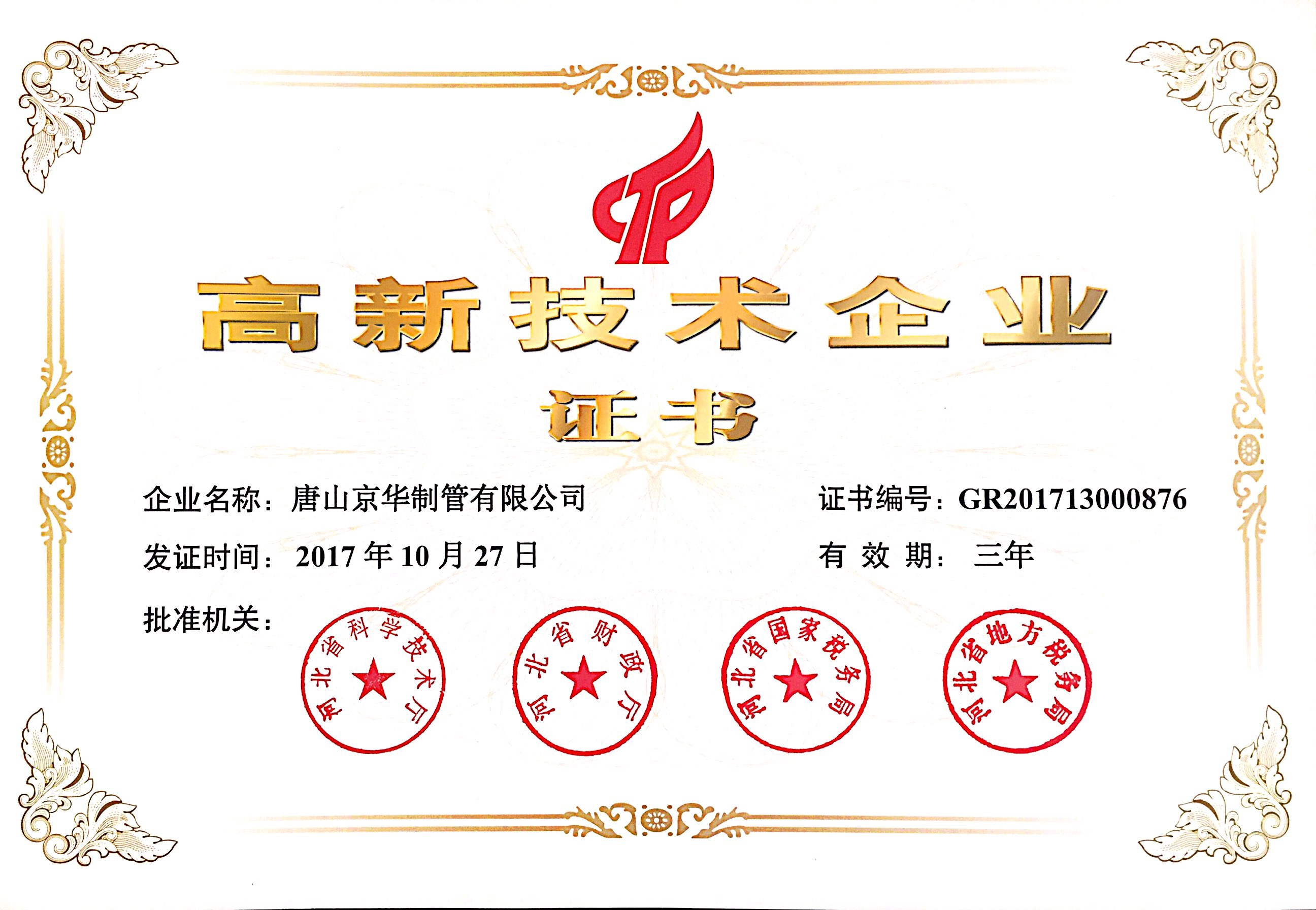 唐山京华通过国家高新技术企业认定 【