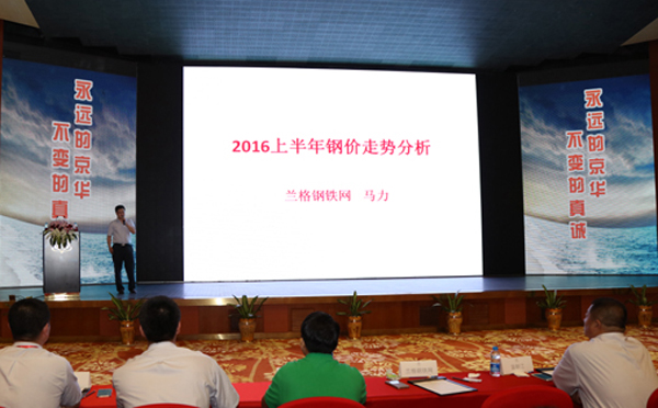 会议邀请兰格钢铁网信息事业部副总经理马力作《2016上半年钢价走势分析》演讲。他对春节后钢材价格走势、供给情况、需求情况等三个方面进行了深入的分析,并对未来钢价走势作出预测。他的演讲赢得了参会人员的热烈掌声。