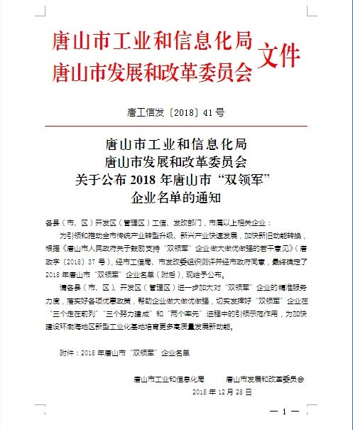 近几年来,唐山京华作为传统钢管制造企业,围绕转型升级确立了“特色发展”理念,坚持“创新、特色、领先、健康”八字方针推进企业由“大”向“特”转型,推进传统产品向高附加值优质特色产品转化。企业高附加值产品钢塑复合管不断占领市场,进入用户手中,高速立柱、外加工定制产品持续增量。企业生产装备快速向自动化、信息化、智能化发展,制造能力和水平不断升级,公司营业收入大幅增长。经开平区推荐,唐山市工业和信息化局、唐山市发展和改革委员会组织测评并经市政府批准,我公司被列入2018年度唐山市传统行业转型升级领军企业,成为全市30家入列企业之一,也是开平区唯一一家入选的传统企业。
