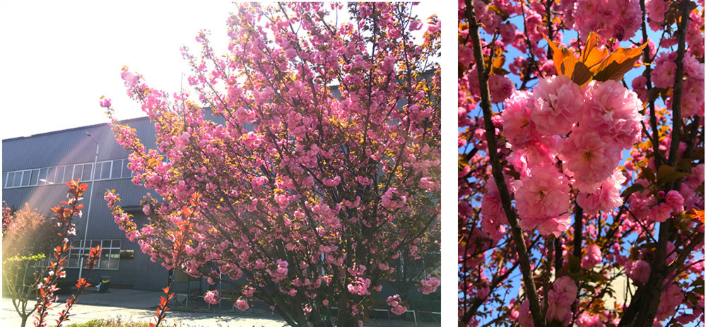 一树树榆叶梅,灿烂多姿,清香宜人,在晨露里含笑绽放,在春风里摇摆着娇媚的身姿。京华厂区里的海棠高低错落、疏密有致。