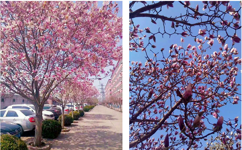 生活区里玉兰绽放,艳而不俗,丽而不媚,丁香花迎风摇摆,婀娜多姿。家家户户开窗可见绿,出门可踏青,三五孩童在篮球场上结伴玩耍。公司为广大职工及家属们打造花园式的生活、工作环境。